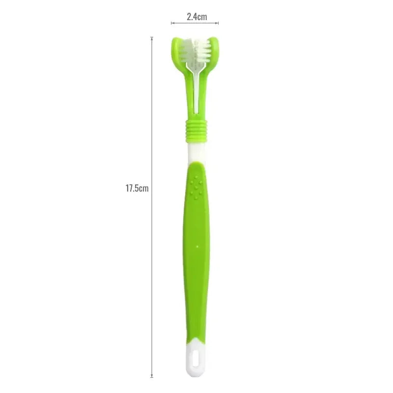 Diese innovative Zahnbürste mit dreiseitigem Bürstenkopf reinigt Zähne effizient von allen Seiten – ideal für Hunde und Katzen jeder Größe und Rasse.